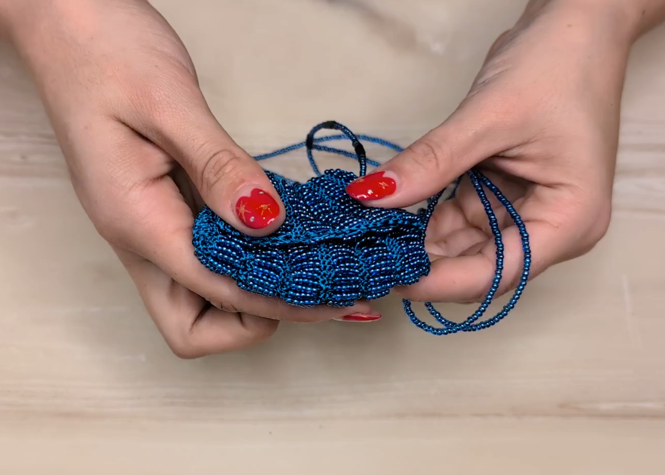 Hand-Beaded Amulet Necklace #7 Deep BlueGreen with dark thread