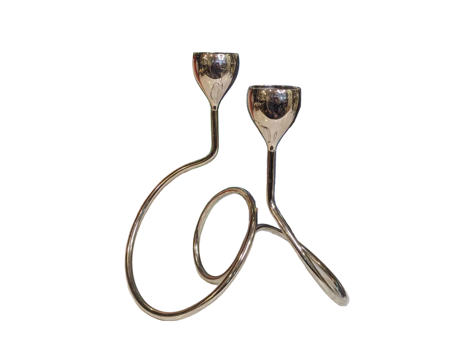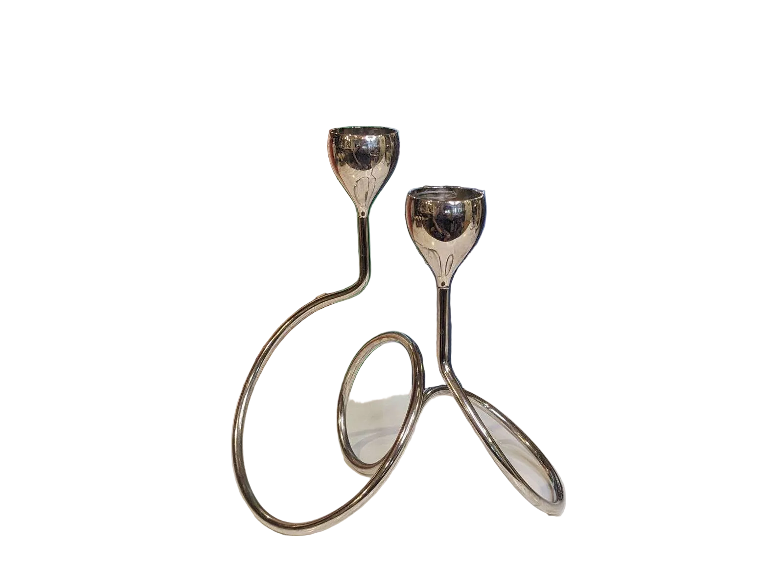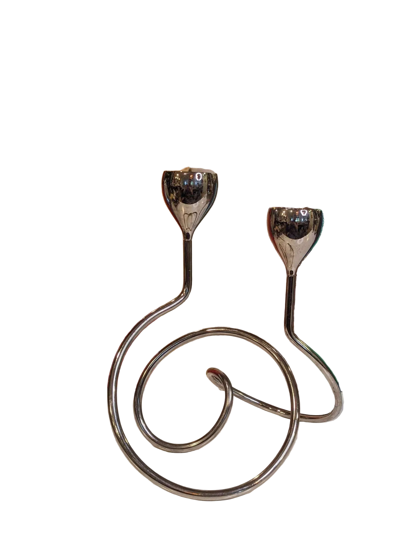 silver plated centerpiece votive candleholder with twisted stem base, holds two votives