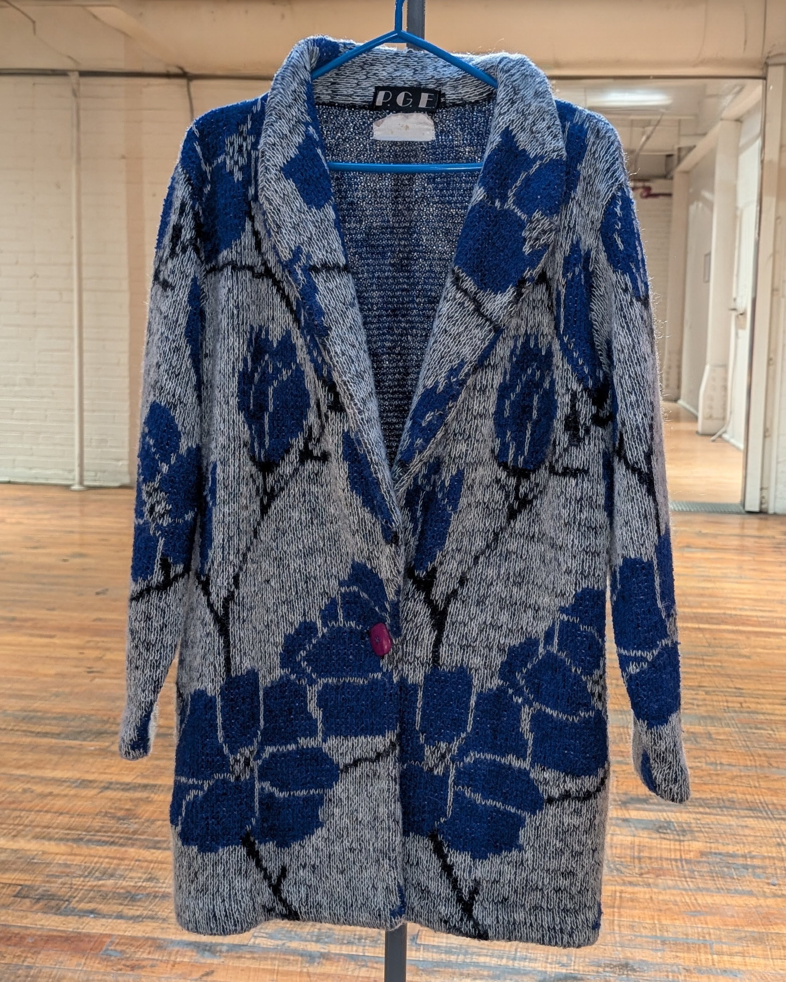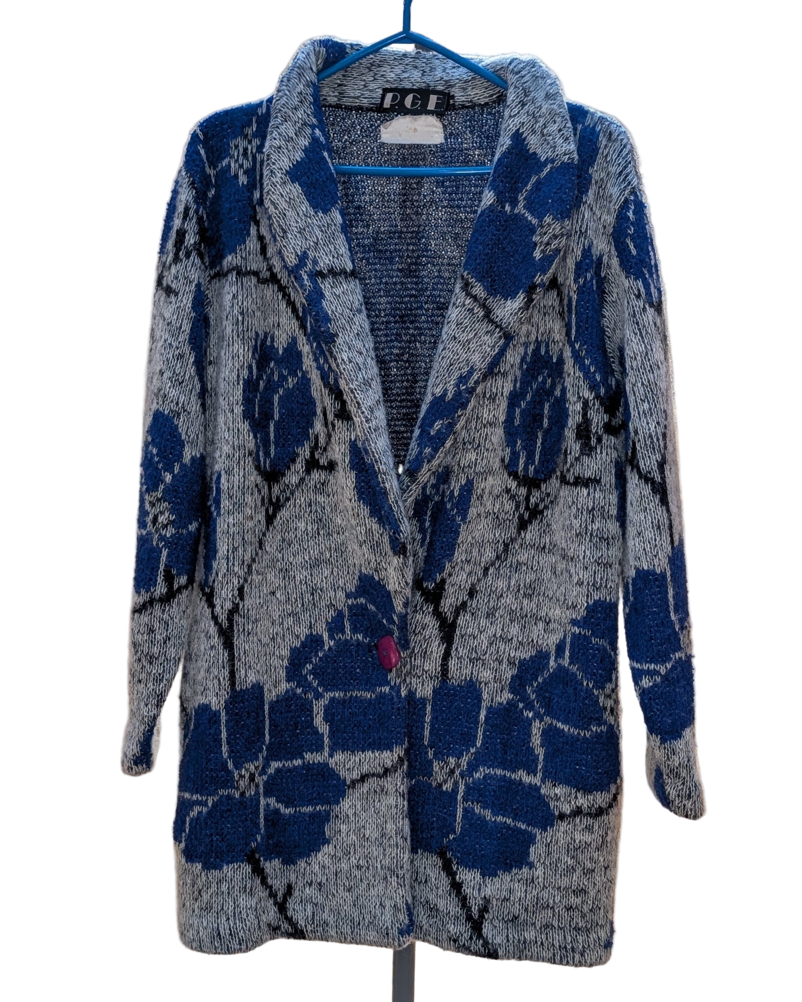 *sold out* Cozy Mohair sweater with blue florals on gray, oversized