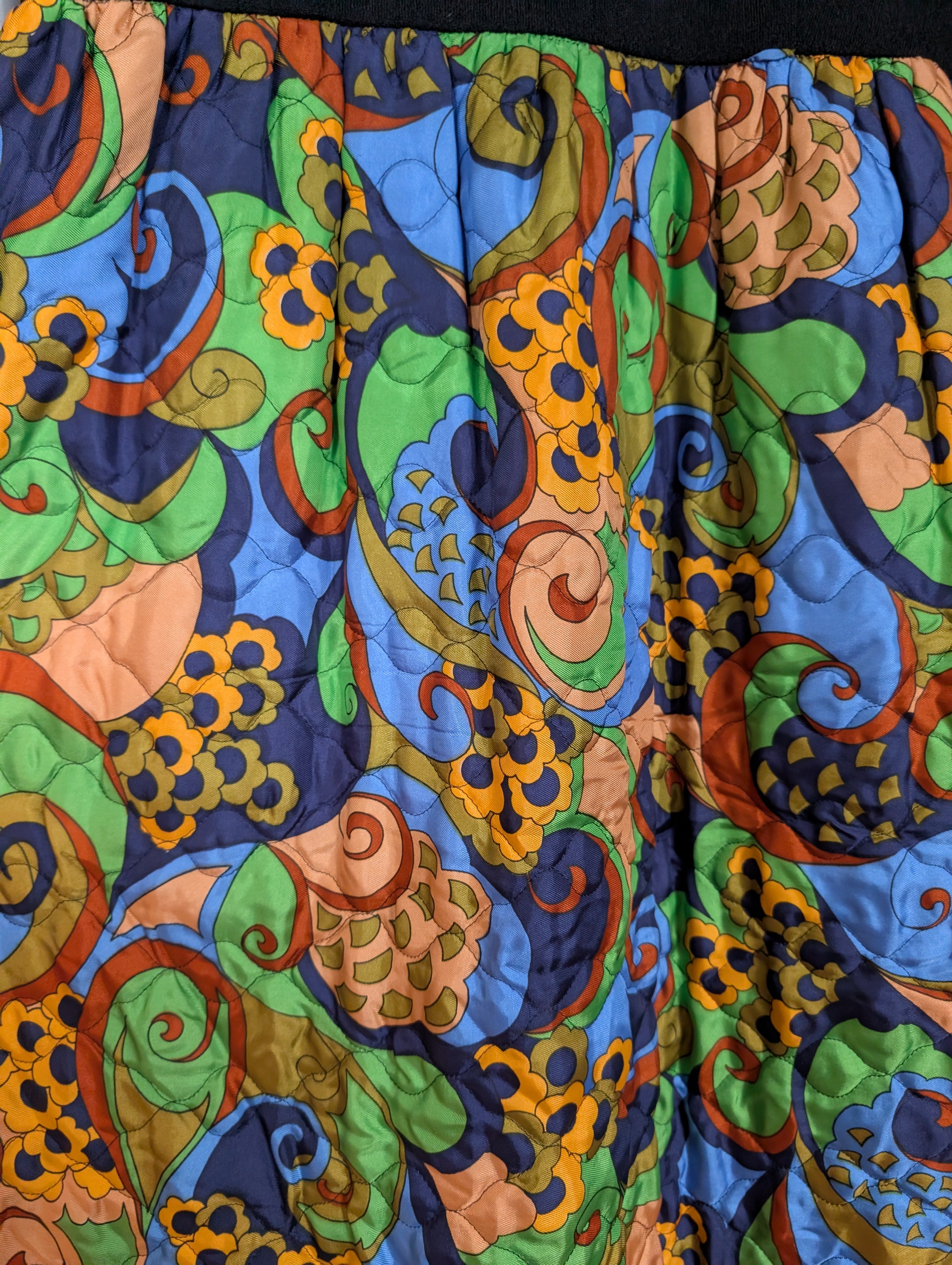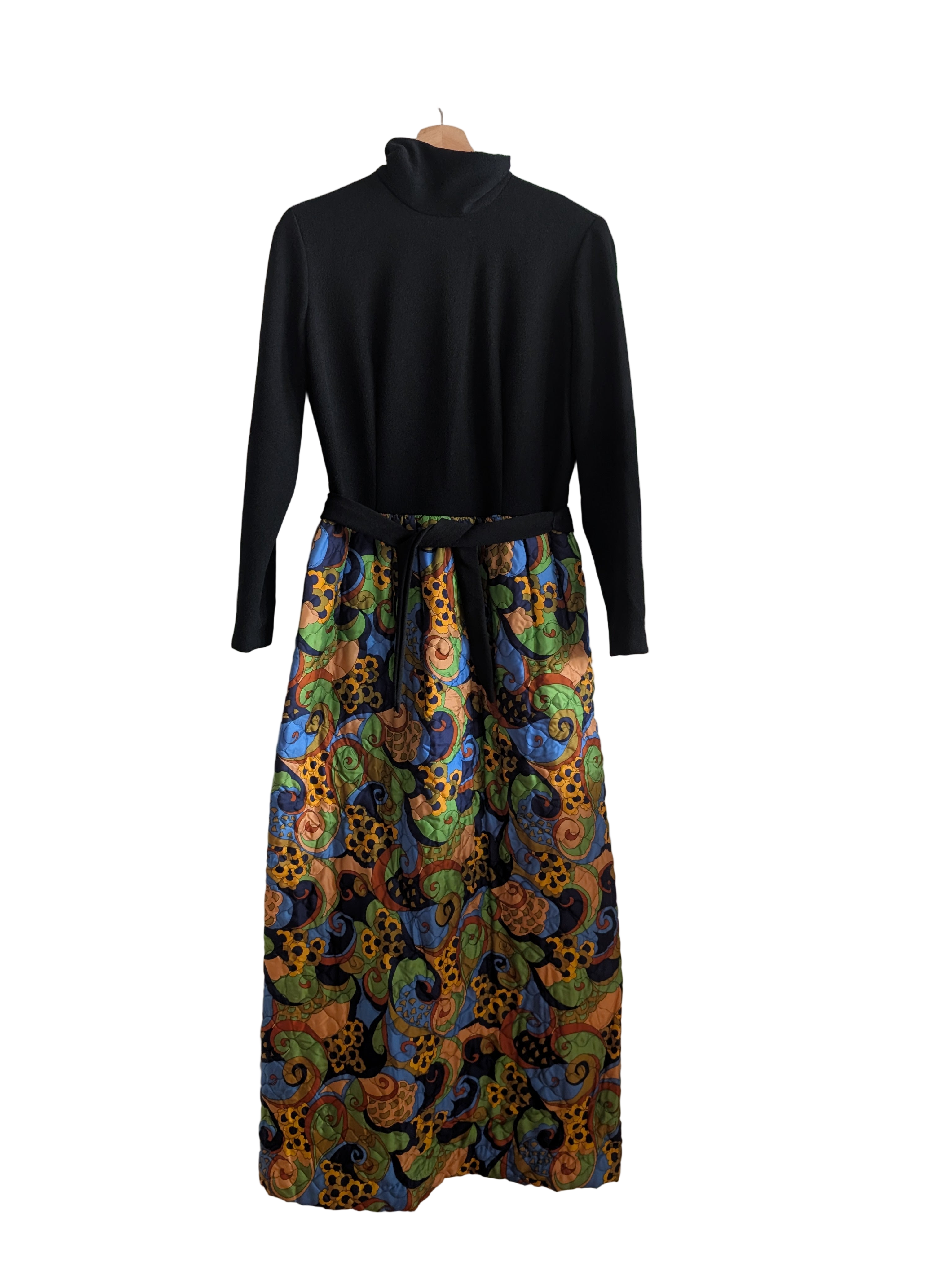 Jane - hostess dress - beautiful black high collared, zip up dress with fall colours quilted floral skirt